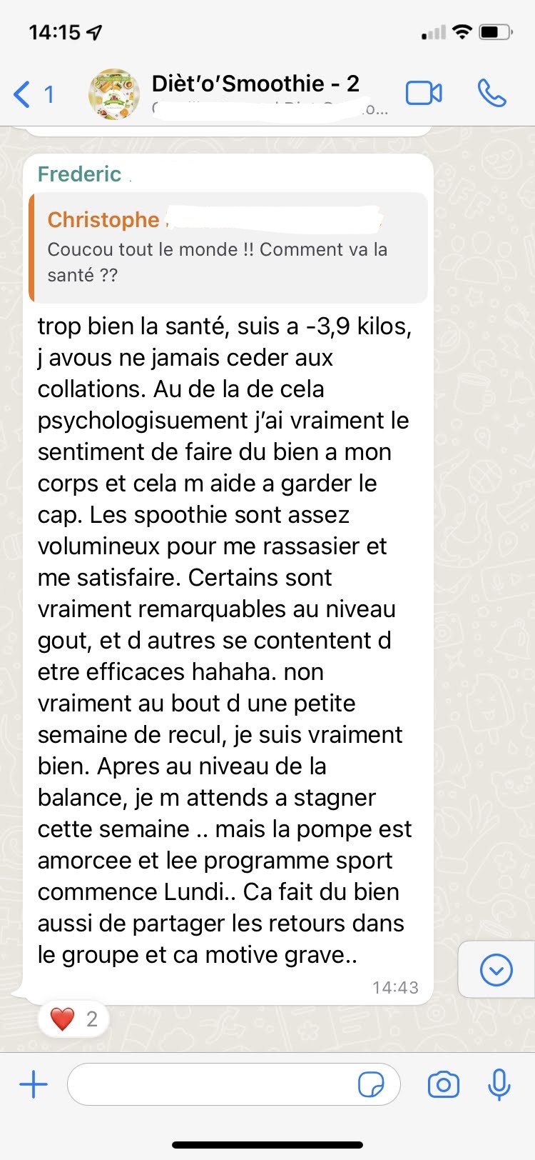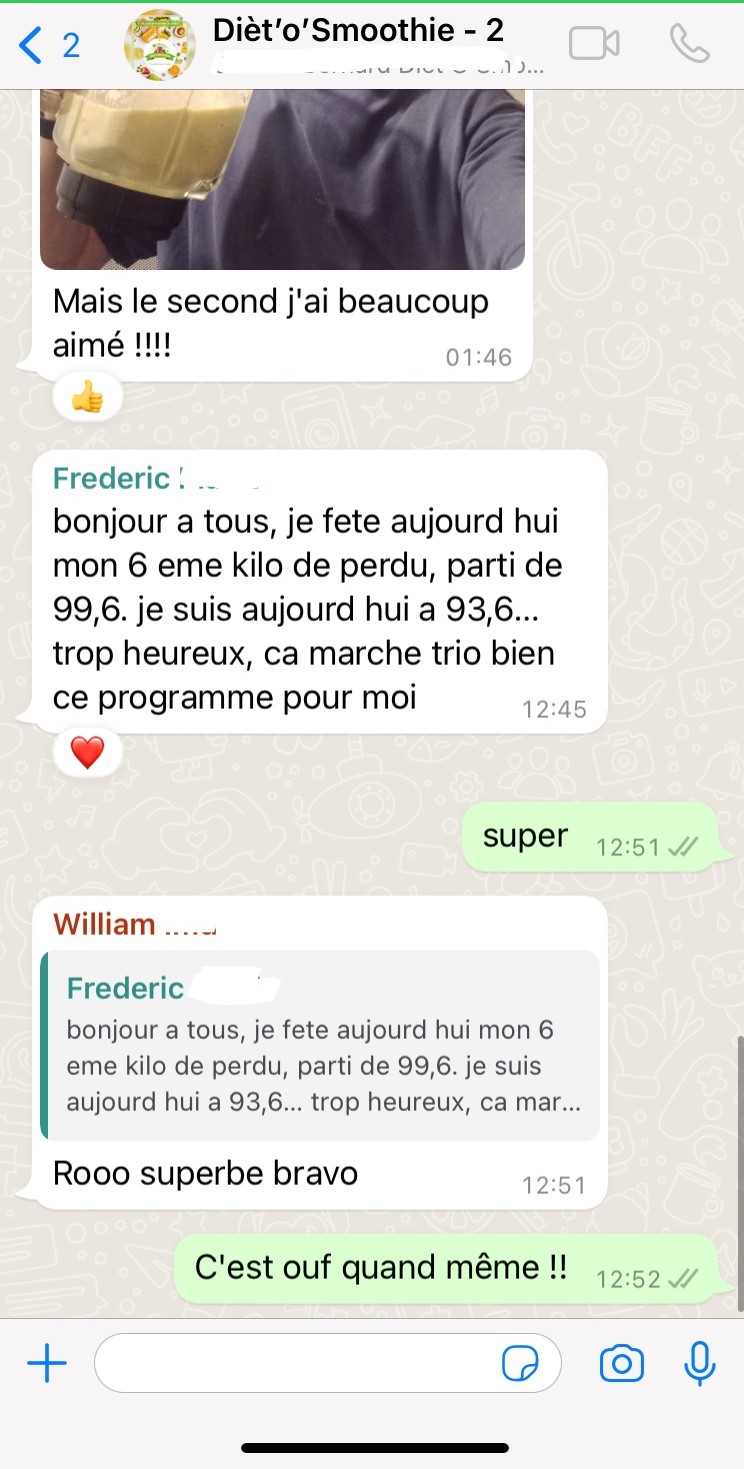 Vous n'êtes pas seul dans votre quête de bien-être ! Avec l'accès à notre groupe WhatsApp, bénéficiez du soutien quotidien qui vous aidera à atteindre vos objectifs de perte de poids.
